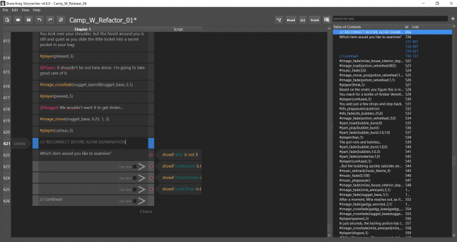 Arguably the most impressive feature of the tool is its variable tracking system. It allowed for complex decision-making in Camp W, as well as keeping track of player interactions throughout the story.