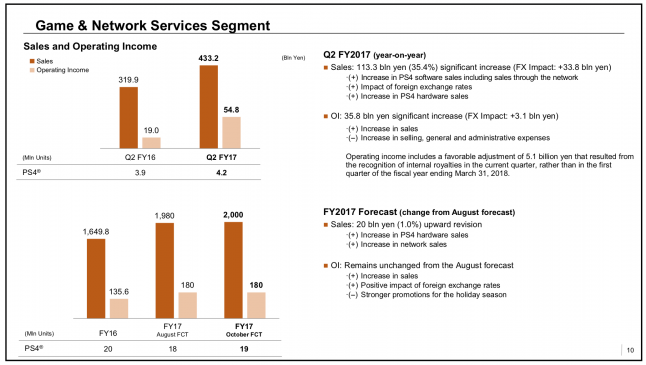 That increase was largely driven by rising PlayStation 4 software and hardware sales, along with the positive impact of foreign exchange rates.