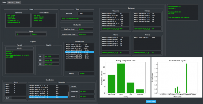 The tool encoded all the mechanics related to the gear system (item drops, gear progression, gacha system). A designer could interact with it and simulate the progression in the game without going through the core mechanics of the gameplay.
